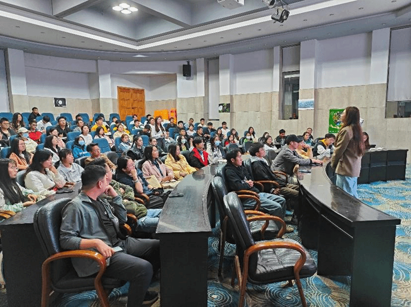 宣讲会现场,清原集团招聘主管赵薇就同学们关心的企业实力、发展前景、岗位待遇、办公地点、签约流程等各方面信息进行了详细介绍,并进行现场答疑。同学们积极提问,现场气氛热烈,互动良好。