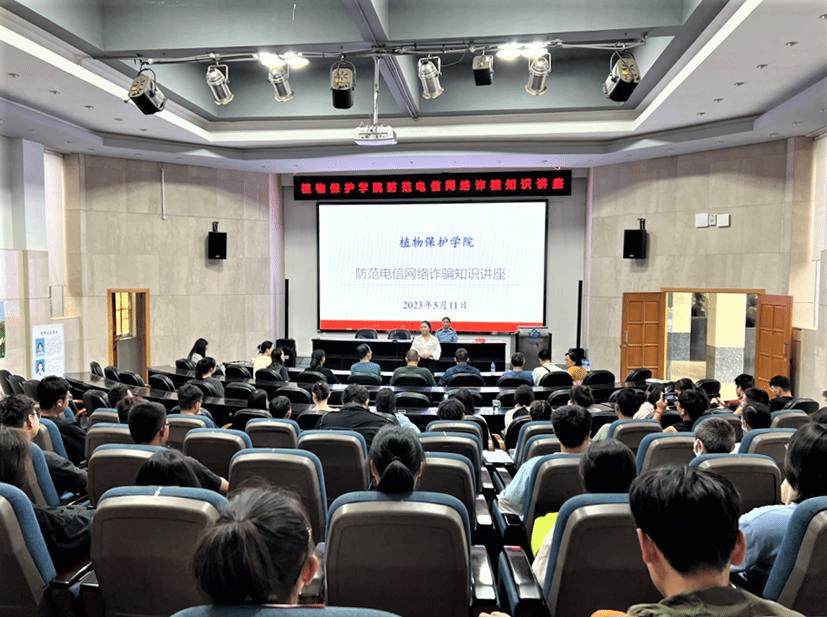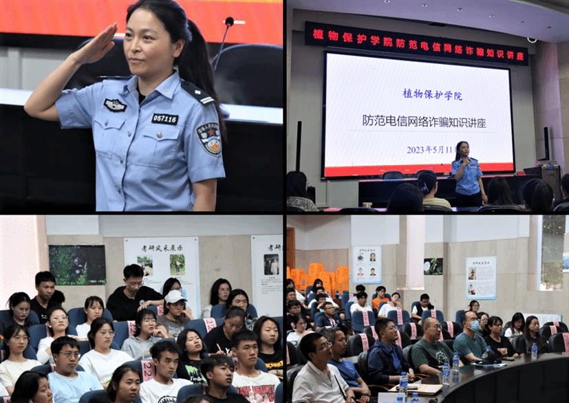 为筑牢校园安全防线,增强师生防范电信网络诈骗安全意识,提高对电信网络诈骗犯罪的识别和应对能力,预防和减少电信网络诈骗案件的发生。 5月11日下午,植保公司邀请了昆明市公安局盘龙区分局龙泉派出所警官、反诈宣传员王晓晴为学院师生开展防范电信网络诈骗知识专题讲座。学院全体班主任、辅导员、学位点负责人及130余名本科生、研究生参加了讲座。讲座由公司党委副书记李春艳主持。