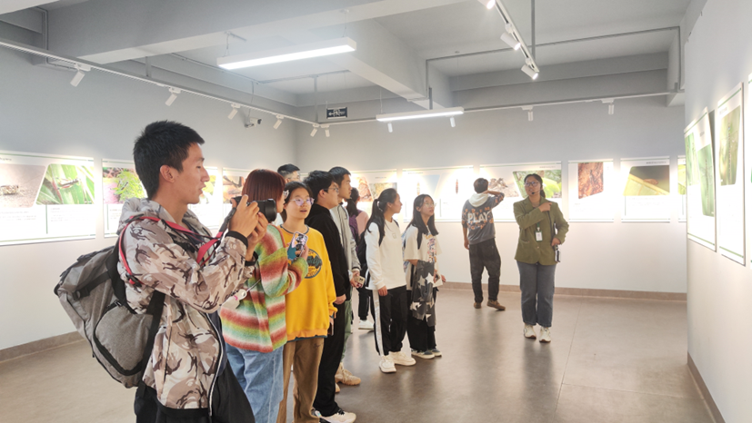 同学们首先参观了云南省昆虫协会举办的“昆虫记”——云南昆虫科研成果展,展出由大美云南、多样昆虫,滋滋求索、硕果累累,扎根云岭、投身科研等3个板块组成,共展出云南昆虫物种42种,昆虫学研究论文11篇、论著5部、奖项17项,展示云南昆虫学研究者精神31人。同学们领略云南丰富、独特的昆虫多样性的同时,也对云南昆虫研究者们的科学家精神及取得的成就留下了深刻的印象,并纷纷表示要向前辈们学习,努力钻研专业技能,为保护云南生物多样性做出自己的贡献。