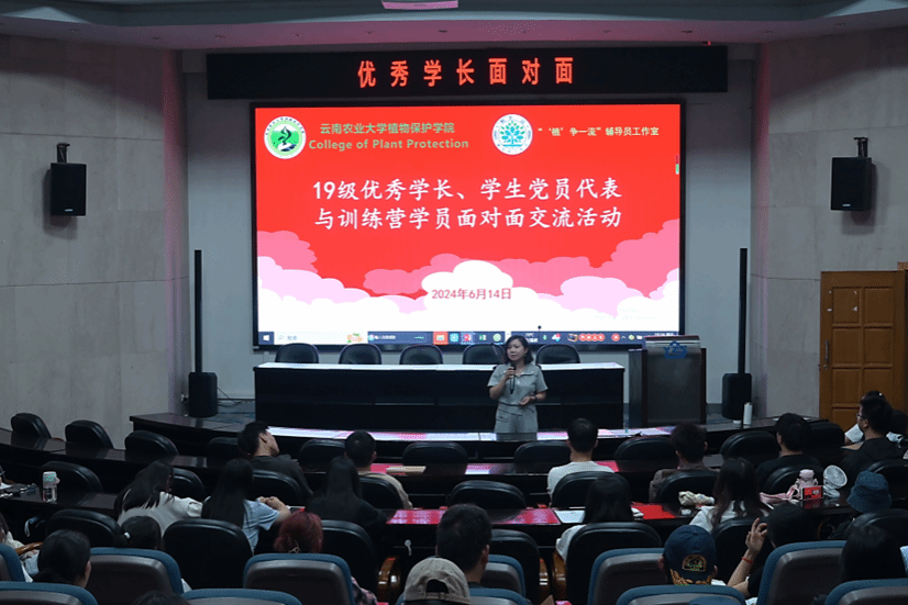 6月14日,伟德bv1946官网邀请2019级优秀员工代表毕潮龙、孙淦琳、赵家伟、陈杰四位党员同志在学院报告厅开展“学长面对面”活动。公司党委副书记李春艳、院学工办及2023级员工120余人参加活动。