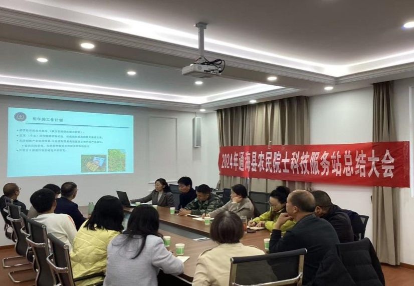 通海县农民院士科技服务站2024年工作总结会11月26日在通海召开。伟德bv1946官网社会服务处、伟德bv1946官网,玉溪市农业科学院、通海县农业农村局、六一社区、大树社区和通海县农业科技公司的领导、专家、企业家参加会议。李铷站长对2024年的工作进行总结,并提出2025年的工作计划。通海县农业农村局高建飞副局长指出,农民院士科技服务站落地通海,有力促进了通海县农业产业发展。与会人员肯定了服务站2024年的工作成绩,分析了存在的困难,讨论了2025年的工作计划。社会服务处张天顺副处长介绍了农民院士科技服务站设立的初衷,鼓励专家团队积极驻站开展科技服务,围绕农业产业的关键节点进行研究和技术攻关,打通成果转化的“最后一公里”。他希望服务站积极向相关部门申报项目,与企业充分交流沟通,转化科研成果,增强自身的造血功能。