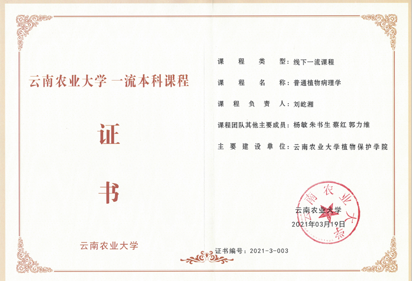 教研室共有教师11名,其中教授5人,副教授4名,讲师2名,形成了““资深-骨干-青年”的老带新团队组合”。课程负责人刘屹湘教授是2017年全国高校黄大年式教师团队主要成员,多次参加校级、省级教学比赛获奖。制作《普通植物病理学》微课参加全国农林类专业微课教学比赛获国家级一等奖,代表伟德bv1946官网与多所农业大学开展《普通植物病理学》慕课建设并在中国大学MOOC网站上线,在《高等农业教育》等发表教改论文多篇。