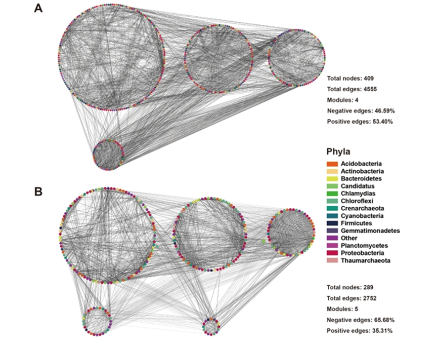 图5抗生素溶杆菌处理后根际微生物群落的互作网络
