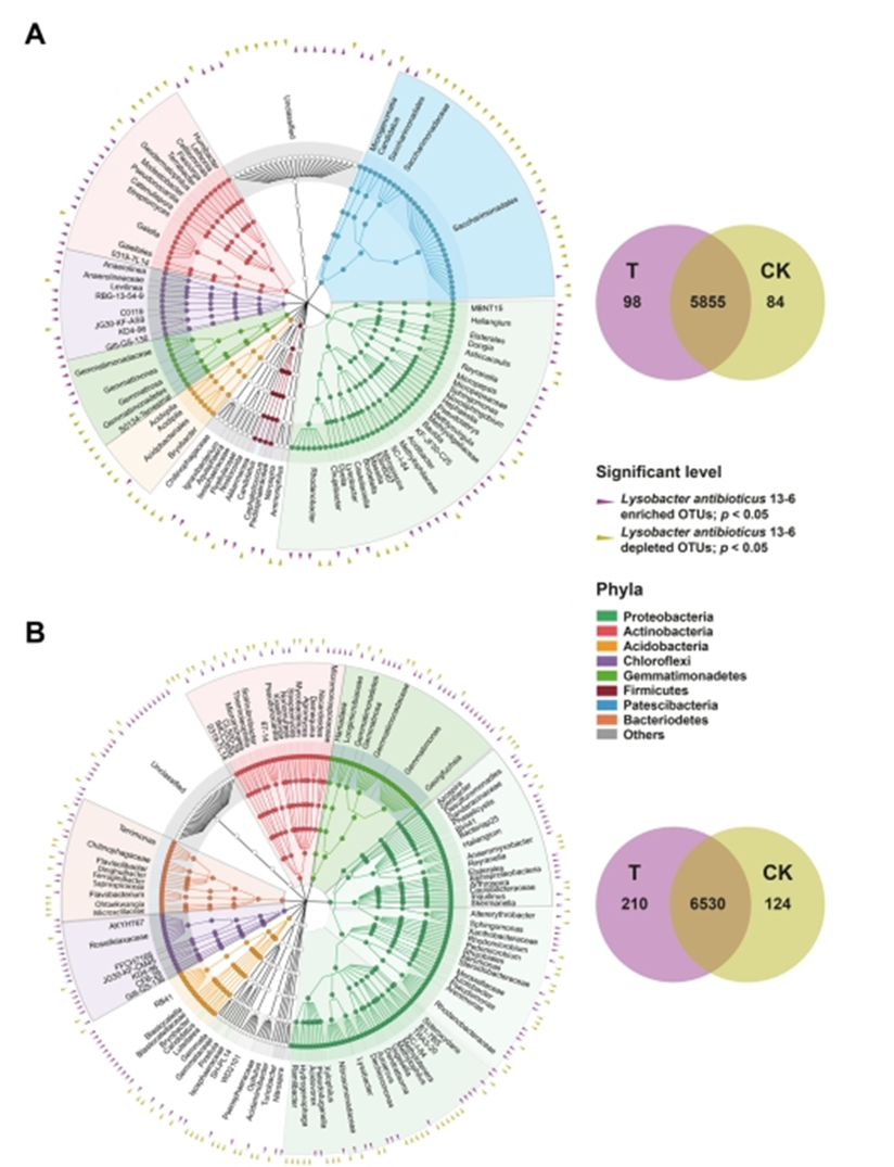 图4.抗生素溶杆菌包衣处理对根际微生物群落的影响
