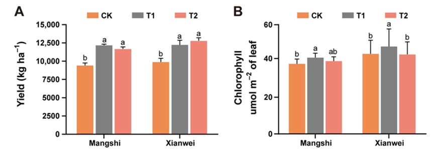 图2.抗生素溶杆菌包衣处理对甜玉米和籽粒玉米产量的影响