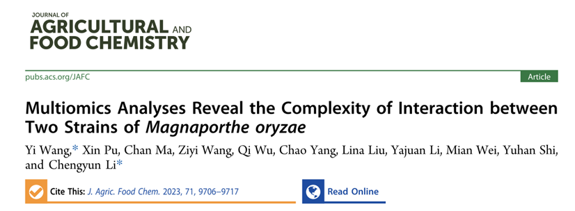 近日,农林科学1区Top期刊Journal of Agricultural and Food Chemistry在线发表了伟德bv1946官网李成云教授研究团队题为“Multiomics Analyses Reveal the Complexity of Interaction between Two Strains of Magnaporthe oryzae”的研究论文。