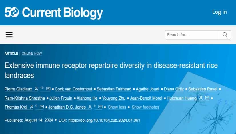 2024814日,黄惠川教授团队联合英国东英吉利大学塞恩斯伯里实验室Jonathan Jones院士和法国农业食品环境研究院蒙彼利埃植物健康研究所Thomas Kroj研究员团队在国际权威期刊Current Biology(中科院1TOPIF5 year=9.8)上联合发表了题为“Extensive immune receptor repertoire diversity in disease-resistant rice landraces”的研究论文,揭示了云南元阳梯田水稻地方品种长期保持抗病能力的关键机制。