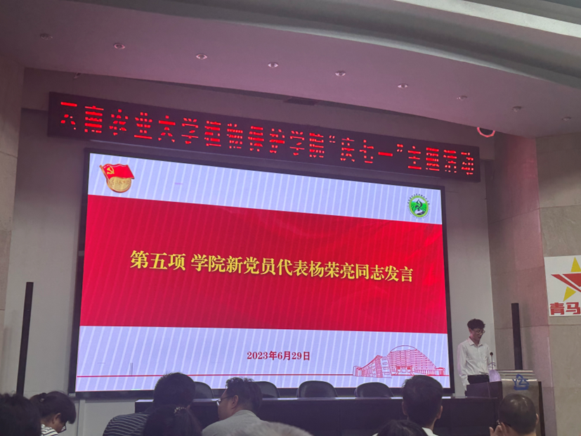 活动中,陈斌以“学习云南省教育大会精神,贯彻落实习近平新时代中国特色社会主义思想,推进学院高质量发展”为题,给全体党员讲党课。党课深入学习习近平总书记关于教育的重要论述,传达学习了云南全省教育发展大会会议精神,分享了对学校高质量发展的认识和理解并对下一步推动学院高质量发展的方向、路径、措施谋划了新的蓝图。他强调,习近平总书记关于教育的重要论述,为加快推进教育现代化、建设教育强国、办好人民满意的教育提供了根本遵循和行动指南。要求党员同志要把思想和行动统一到习近平总书记重要论述上来,统一到党中央决策部署上来,始终坚持党对教育工作的全面领导,全面建设高质量教育体系,努力办好人民满意的教育,高标准高质量推动学院各项工作再上新台阶。老党员代表王文倩、新党员代表杨荣亮进行发言,两位同志均表示,青年一代的我们应该听党话,跟党走,勇挑重担,增长本领才干,砥砺担当作为,努力成为堪当民族复兴大任的时代新人。