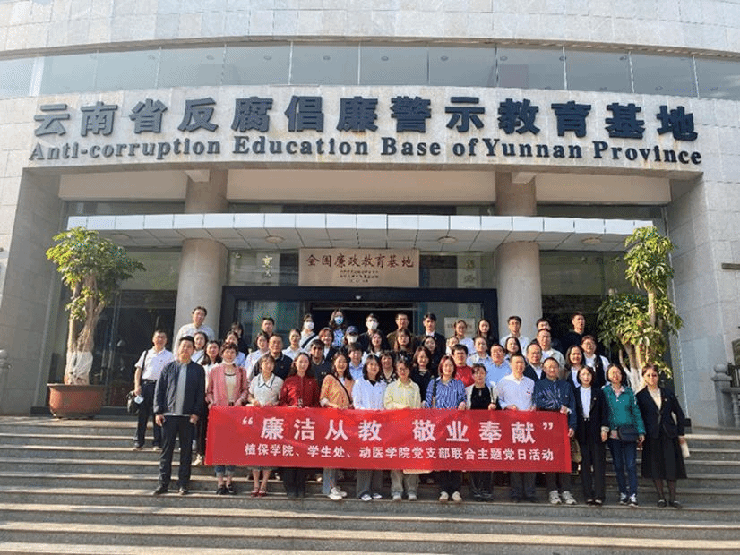 为深入贯彻落实党的二十大精神及学校深化推进“清廉学校”建设工作会议精神,2023年4月13日上午,伟德bv1946官网8个党支部联合员工处及动医公司党支部60余师生党员,前往云南省反腐倡廉警示教育基地开展“廉洁从教 敬业奉献”联合主题党日活动。
