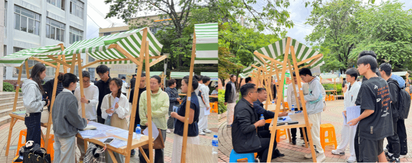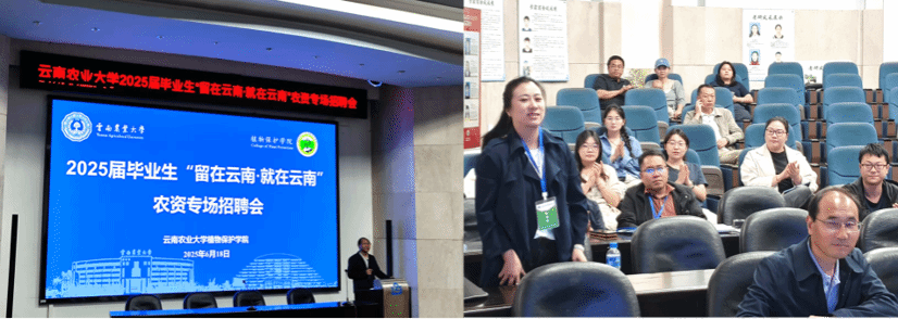 会后,在学院小广场举办了2025届毕业生“留在云南·就在云南”农资专场招聘会,汇聚了13家农资优质企业参与,提供了涵盖农药研发、生物防治、农技服务、推广销售等60多个优质就业岗位,吸引了来自植保、农学、资环、园林园艺学院的员工参与。同学们手持简历穿梭于各企业展位之间,企业代表与毕业生进行深入交流,学院领导和老师也积极到场与用人单位交流,用人单位普遍表示这种精准对接极大提升了招聘效率。