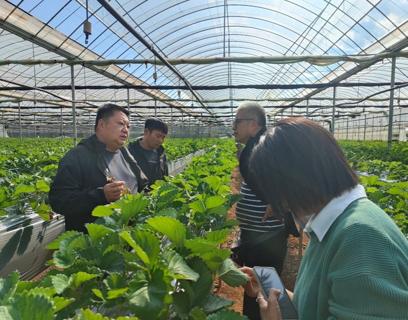 最后,双方到达丽江市古城区建乙农牧业综合开发有限公司实践基地,实地调研草莓种植基地红蜘蛛频发、叶片灼烧腐败等病虫害情况,现场讲授防治知识,为企业送去科技良方。
