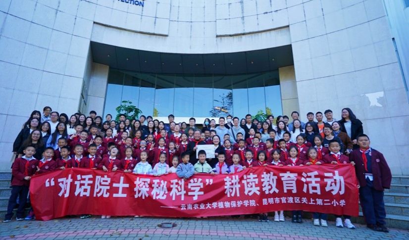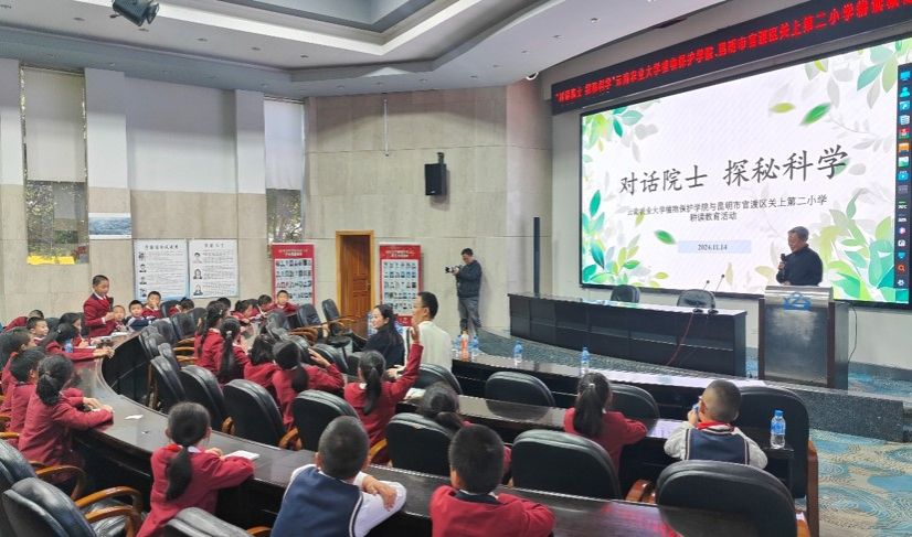 11月14日,由公司与官渡区关上第二小学联合开展 的“对话院士 探秘科学”耕读教育活动在学校举行。“时代楷模”朱有勇院士出席活动并同孩子们开心互动,经理蔡红主持活动。云南省青年科技工作者协会副会长、昆明市中小学科技创新协会会长胡磊、关二小董事长王蜃淋、公司党委副书记李春艳、团学办有关人员、2024级学硕班员工代表及关二小师生代表共计120余人参加活动。