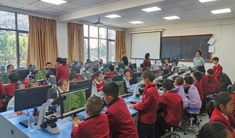 小员工们还到了博学楼实验室,观看昆虫科普视频,学习“蚜虫-瓢虫-蚂蚁”之间的食物链关系等。他们热情高涨、好奇满满,与实验室吴道慧老师、刘旭燕老师积极互动,现场气氛热烈,效果良好。